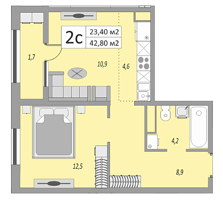 В продаже 2 комнатная квартира, S - 66.3 кв.м.