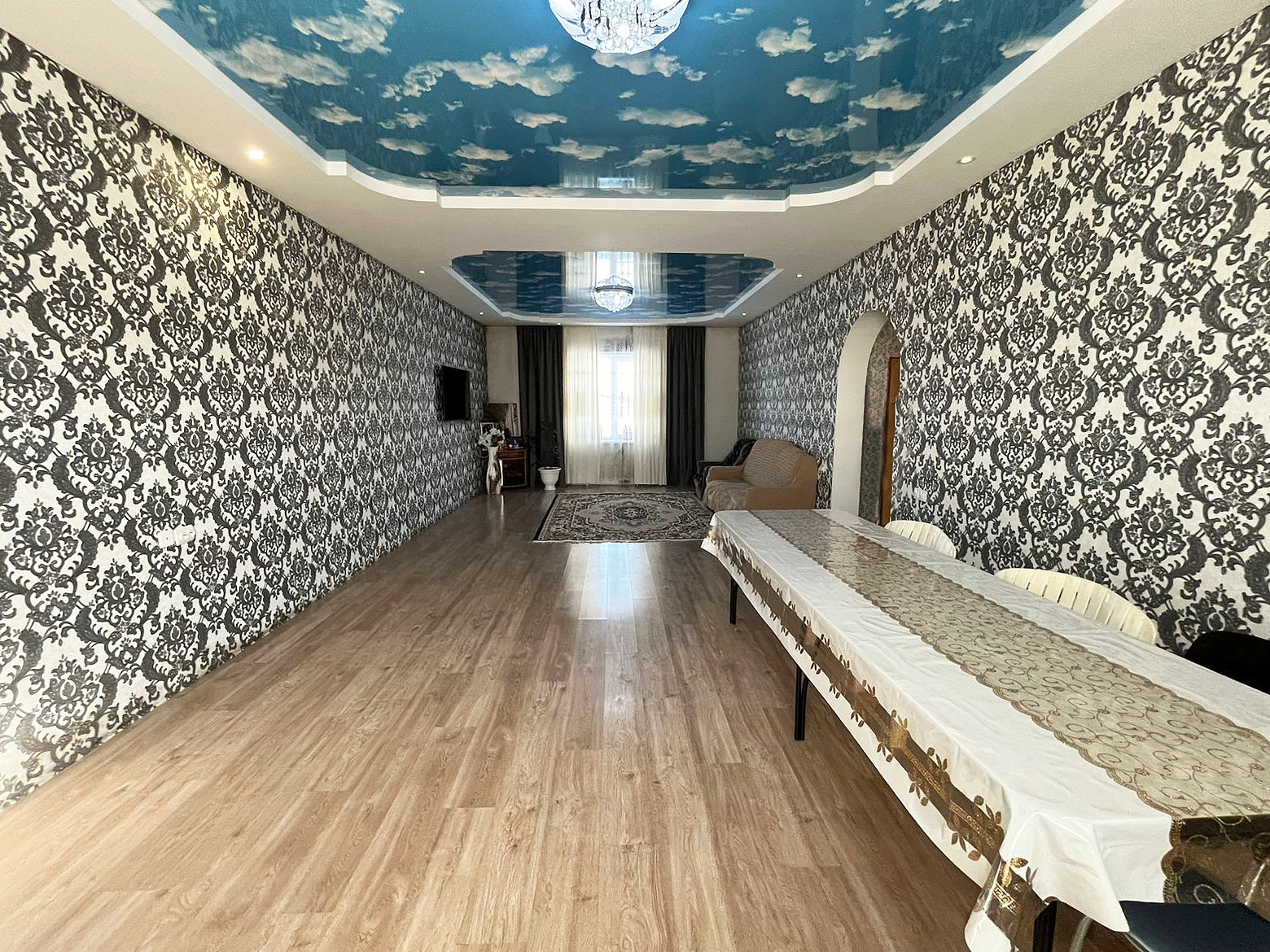 Зал - 50 кв.м , две спальни, кухня, второй этаж свободной площади , просторный санузел. что предоставляет достаточно пространства для вашей семьи или создания удобных зон для отдыха и работы.