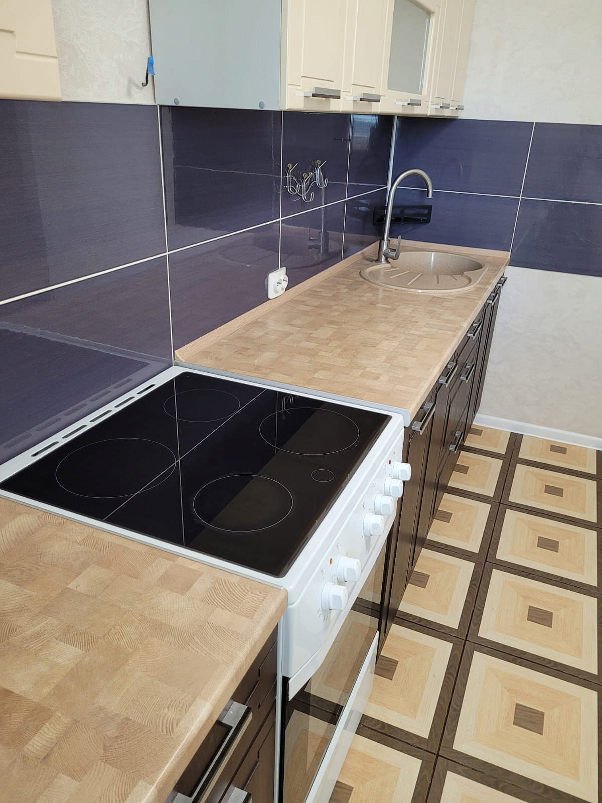 В прихожей и кухне на полу керамическая плитка.