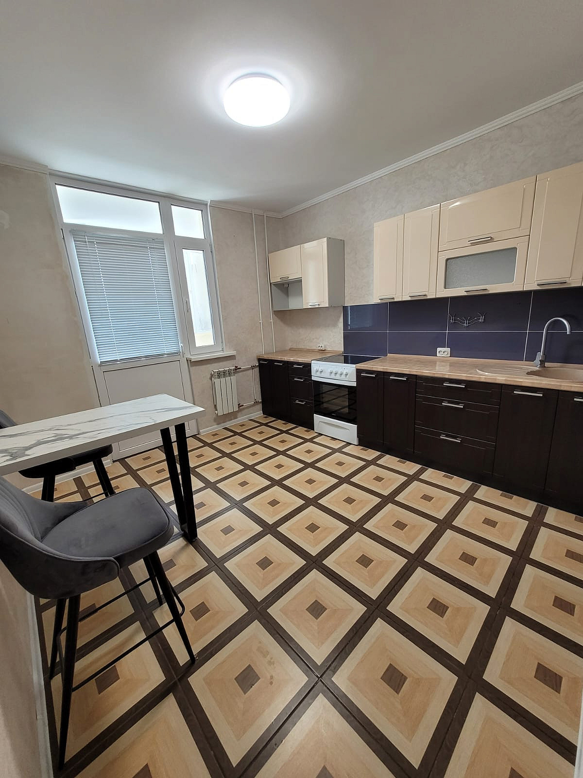 В кухне установлена мощная сплитсистема Kentatsu.