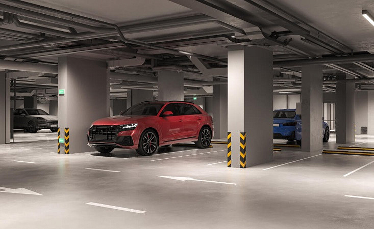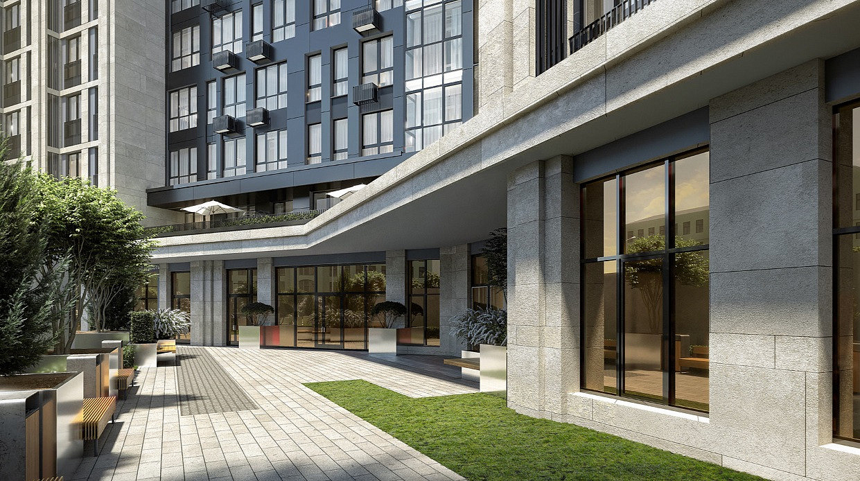 - Приватный огороженный двор без машин, с водной гладью и слэбами камней. В доме консьерж-сервис, "умный дом", видеонаблюдение, кладовые и паркинг.