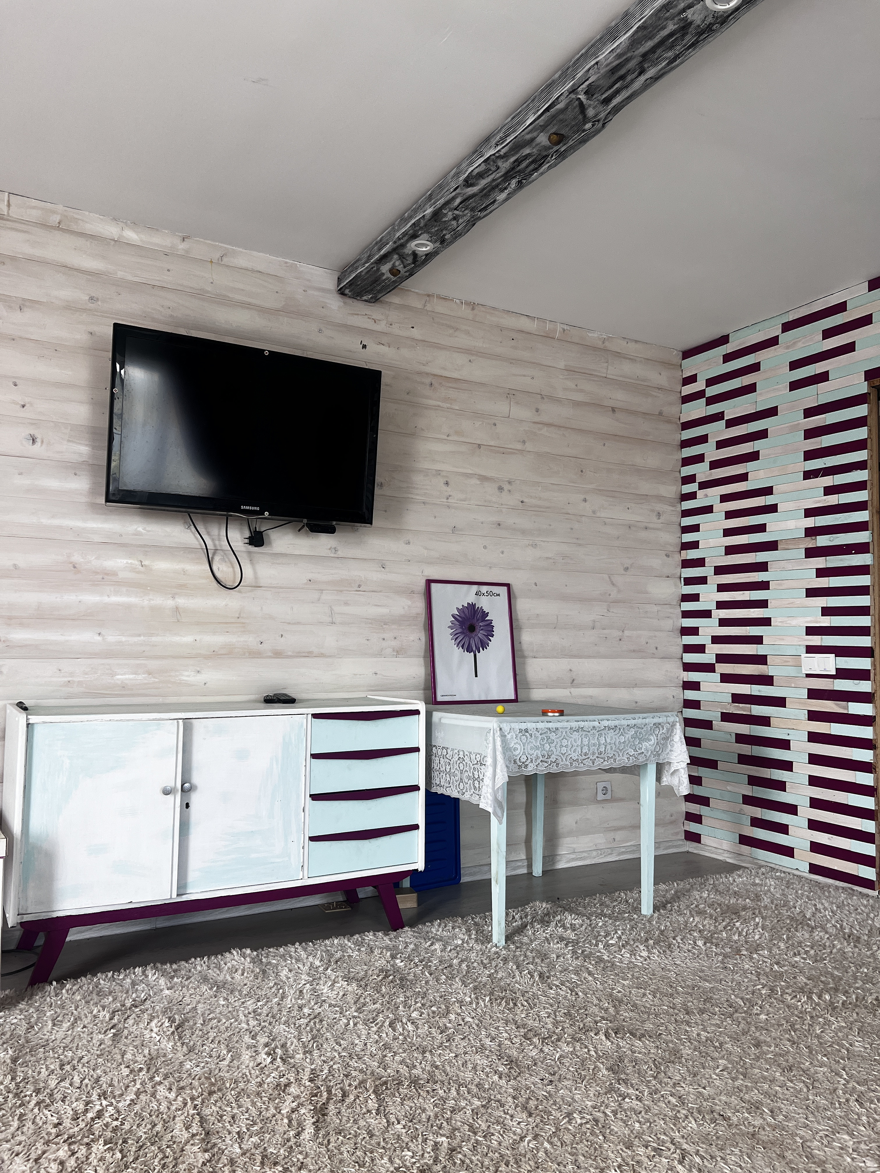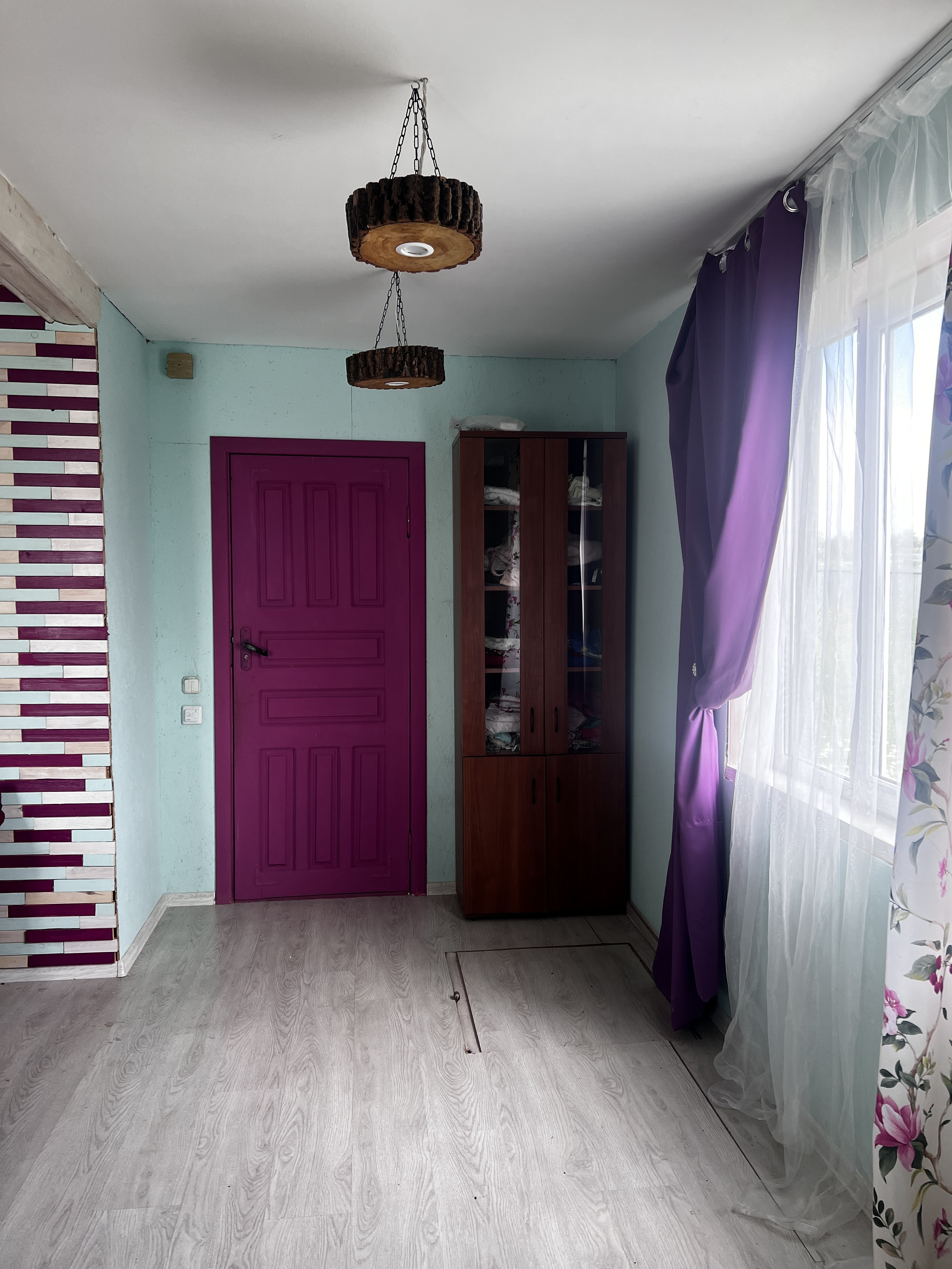 Отделка:ламинат, кафель, обои