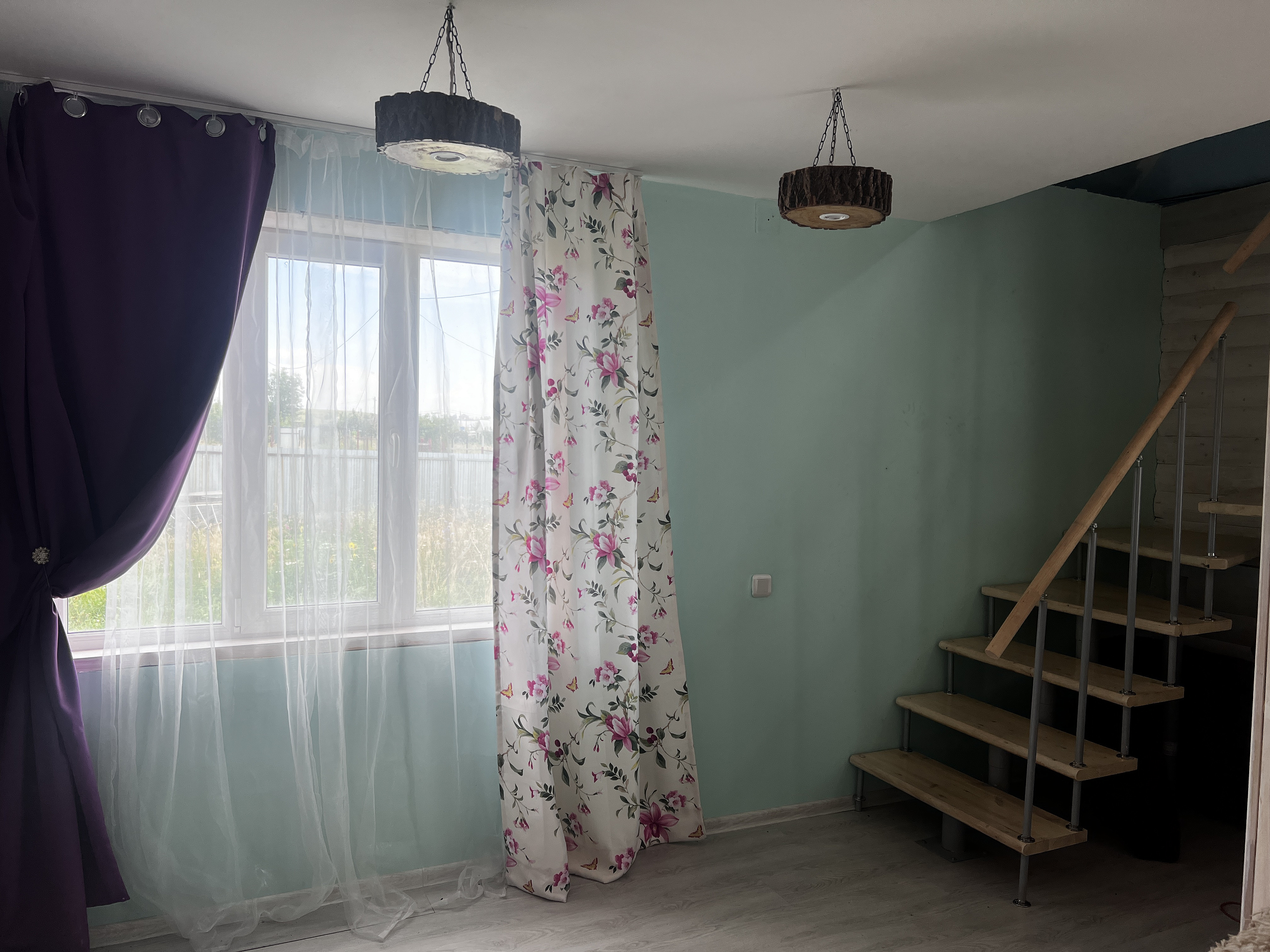 Два этажа : кухня, гостинная и две спальни