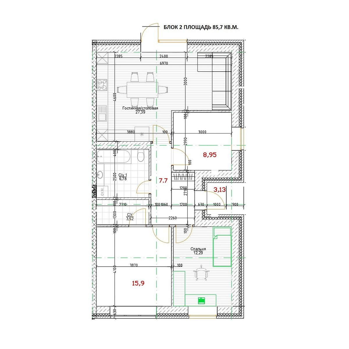В продаже трехкомнатная квартира, S – 87 кв.м.