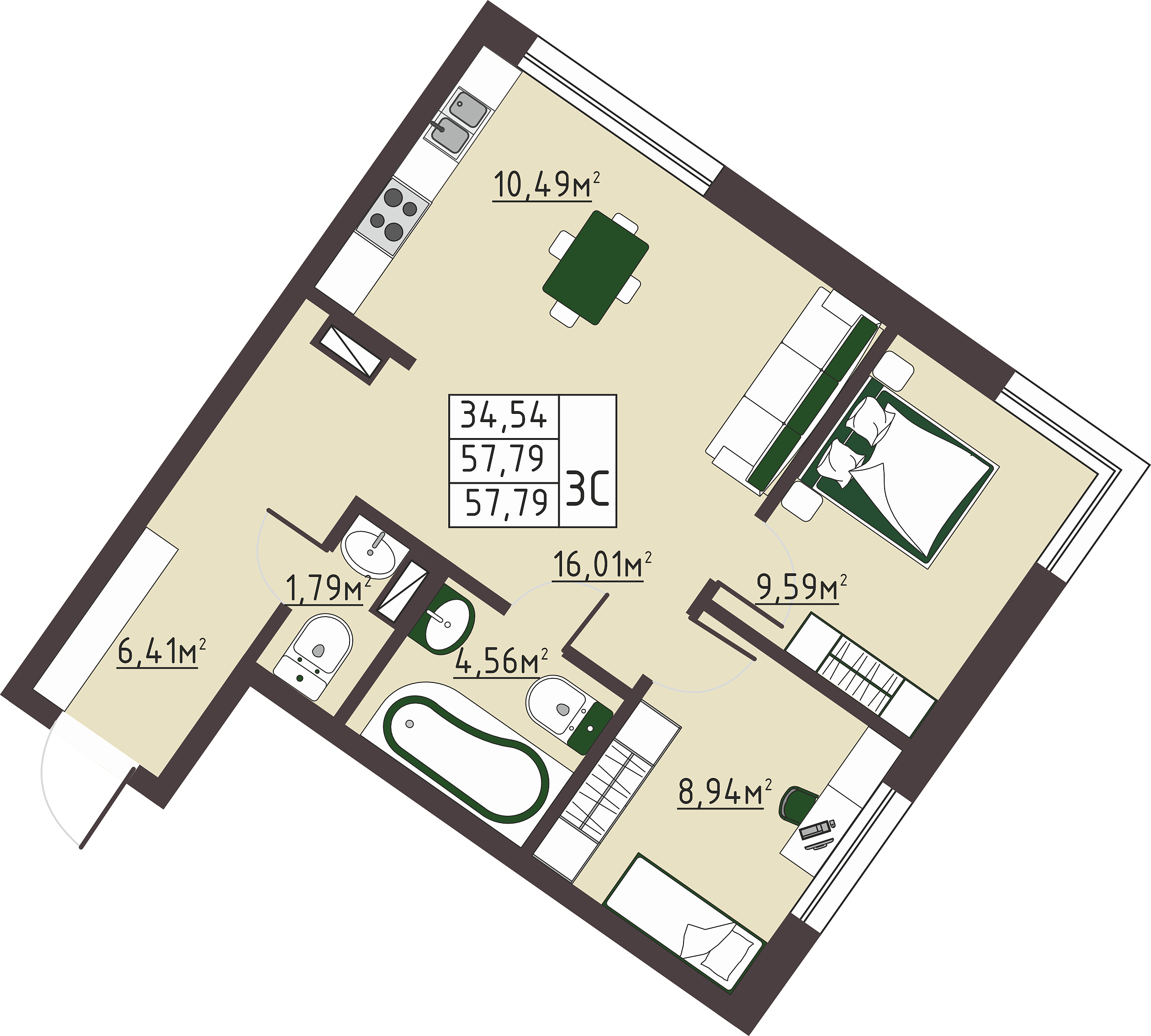 ✅ В продаже двухкомнатная квартира, S - 58 кв.м.