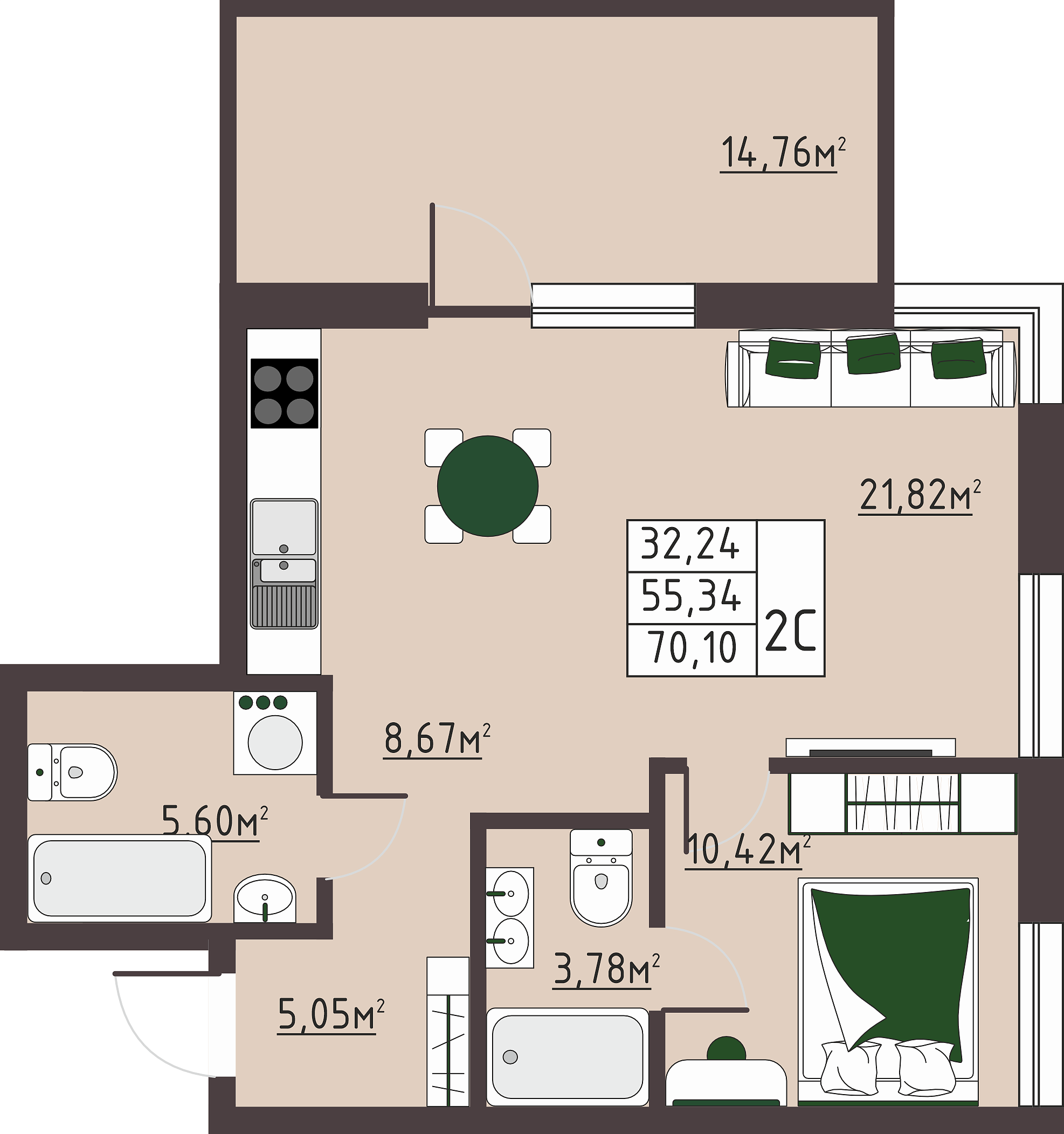 Качественная черновая отделка, что позволяет вам воплотить все ваши дизайнерские задумки и создать уютное пространство для вашей семьи.