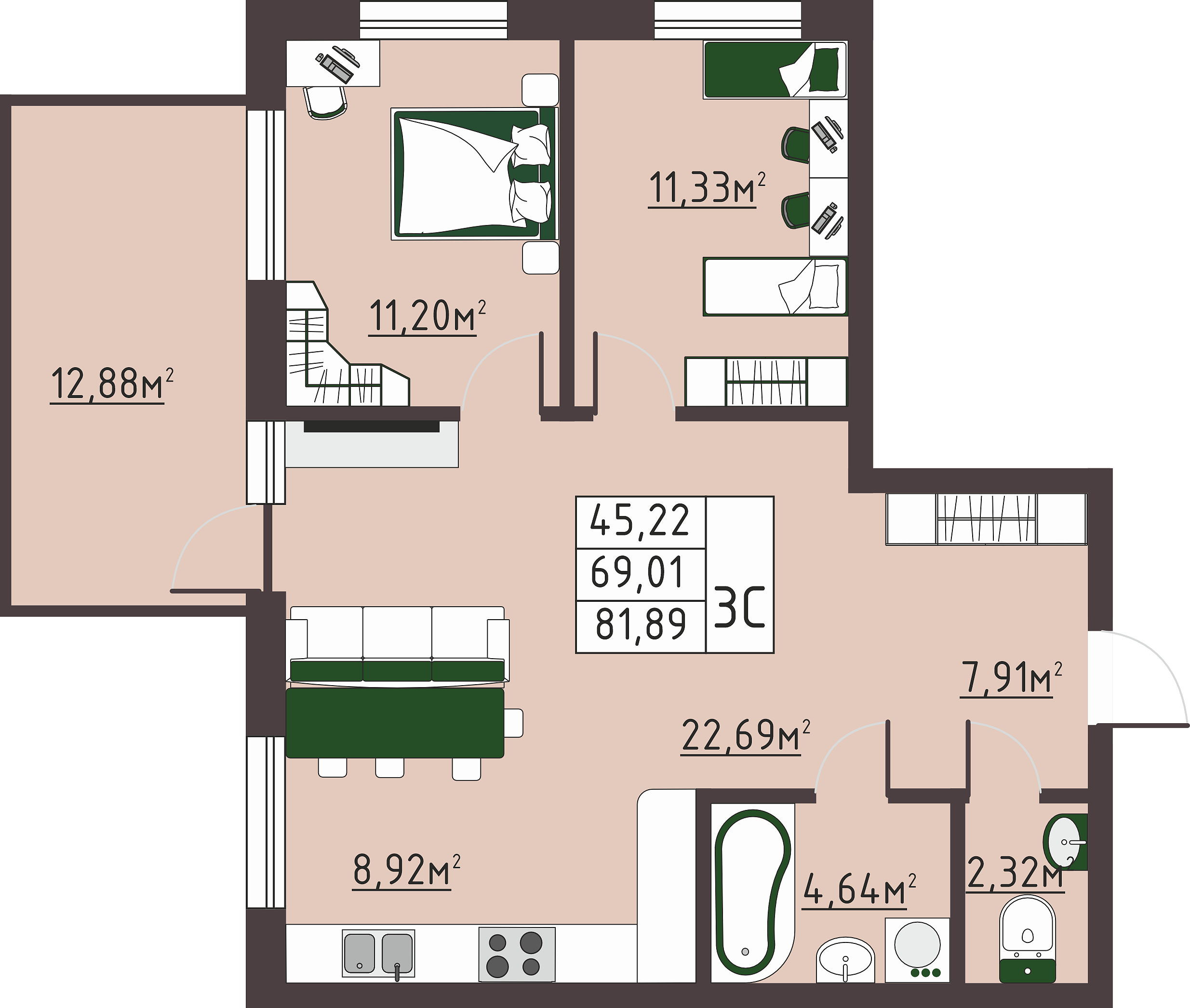 ✅ Качественная черновая отделка, что позволяет вам воплотить все ваши дизайнерские задумки и создать уютное пространство для вашей семьи.