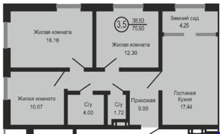 Общая площадь 76 м2