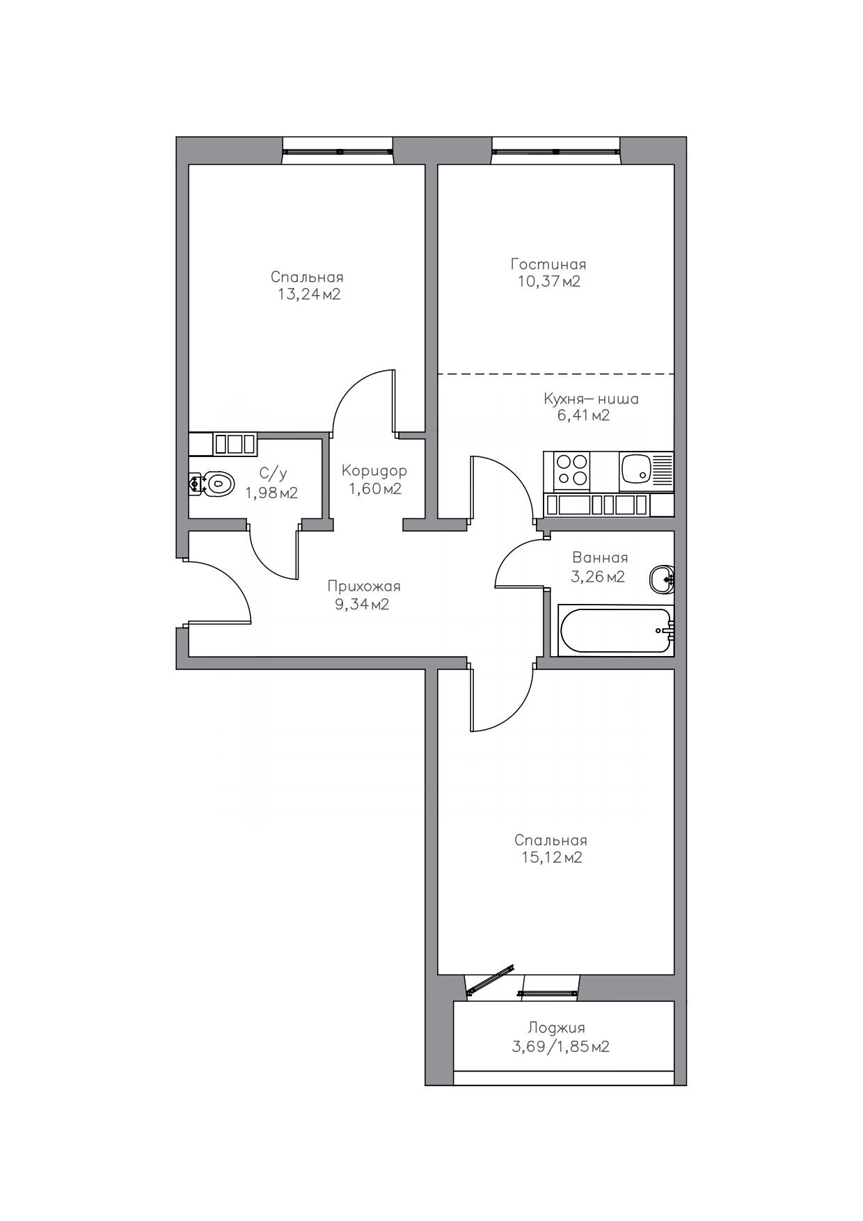 Количество комнат: 2