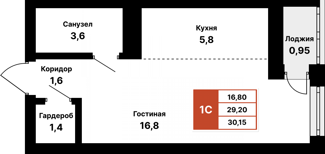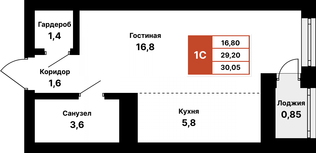 Студия в ЖК "8 марта", Уфа, 30.15 кв.м.