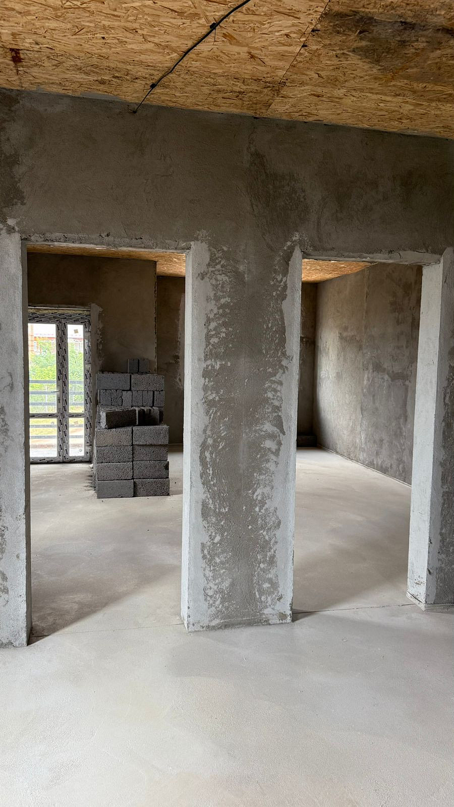 - Полы: заливная стяжка по всей площади первого этажа, теплый пол
